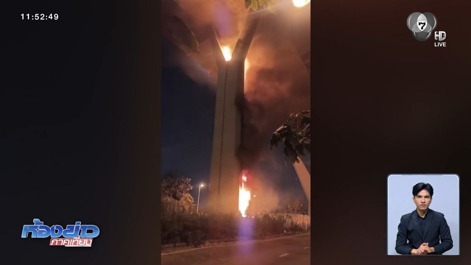 แตกตื่นกันทั้งพระประแดง เมื่อจู่ ๆ เกิดเพลิงลุกไหม้ตอม่อสะพานภูมิพล 2 ฝั่งปู่เจ้าสมิงพราย จังหวัดสมุทรปราการ