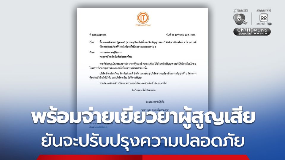 บริษัท อิตาเลียนไทย ดีเวล๊อปเมนต์ จำกัด (มหาชน) ขอแสดงความเสียใจอย่างสุดซึ้ง ต่อครอบครัวของผู้เสียชีวิตและผู้ที่ได้รับบาดเจ็บทั้งทางร่างกายและจิตใจ