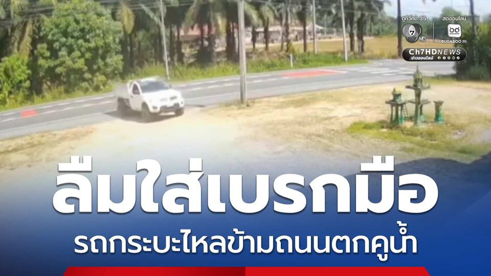 ข่าวเด็ด 7 สี - รถกระบะขับมาจอดหน้าร้าน และลืมดึงเบรกมือ ทำให้ตัวรถไหลข้ามถนน ก่อนตกลงไปในคูข้างทาง ที่จังหวัดกระบี่