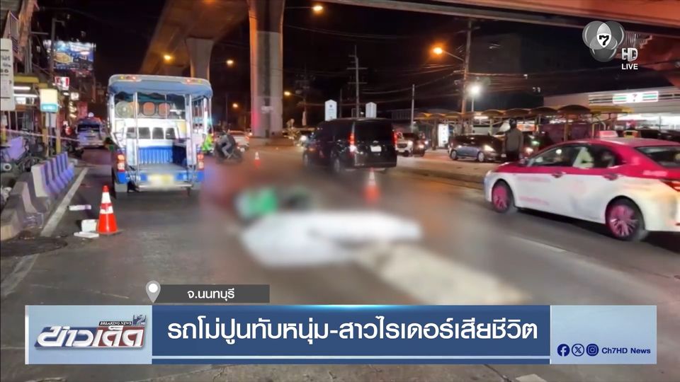 ตำรวจ สภ.เมืองนนทบุรี ตรวจสอบที่เกิดเหตุเพบศพนายณรงค์ศักดิ์ อายุ 34 ปี สภาพนอนคว่ำหน้าคอหัก และนางสาวพลอยนับพันอายุ 37 ปี สภาพศพนอนหงายถูกรถทับศรีษะ ใกล้กันพบรถ2แถว จอดอยู่เลนซ้ายของถนน และถัดไป 100 เมตร พบรถโม่ปูน