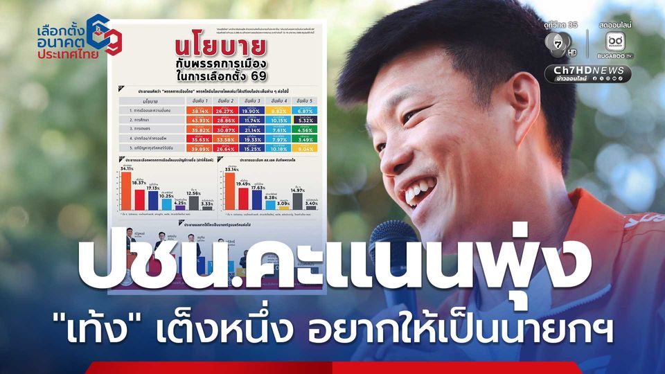 สวนดุสิตโพล สำรวจเปรียบเทียบนโยบายพรรคการเมือง ปชน. กวาดเรียบ 4 ด้านโดดเด่นสุด ส่วน เพื่อไทย นโยบาย ปากท้องได้เปรียบ ขณะที่ “เท้ง-ณัฐพงศ์” เต็งหนึ่ง อยากให้เป็นนายกฯ ทิ้งห่าง ยศชนัน-อนุทิน
