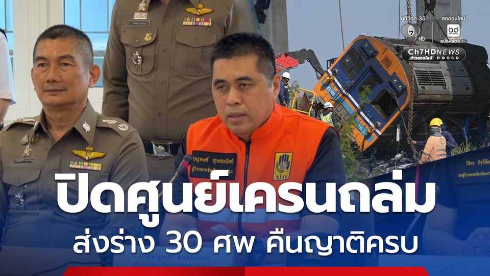 ปิดศูนย์พิสูจน์เอกลักษณ์บุคคล ส่งเหยื่อเครนมรณะทับรถไฟสีคิ้ว 30 คน กลับภูมิลำเนาทั้งหมดภายในวันนี้ เยียวยารายละกว่า 1.7 ล้านบาท การรถไฟเร่งเคลียร์พื้นที่-ซ่อมทางให้เปิดเดินรถภายใน 24 ชั่วโมง