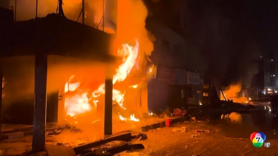 เจ้าหน้าที่ดับเพลิงเร่งระดมฉีดน้ำดับไฟที่กำลังโหมลุกไหม้อย่างหนัก หลังเกิดเหตุเพลิงไหม้ครั้งใหญ่ ในห้างสรรพสินค้าแห่งหนึ่งในเมืองการาจี เมืองใหญ่ทางตอนใต้ของปากีสถาน วานนี้ เมื่อคืนวันเสาร์ ทำให้มีผู้เสียชีวิตอย่างน้อย 3 คน และบาดเจ็บอีกกว่า 20 คน