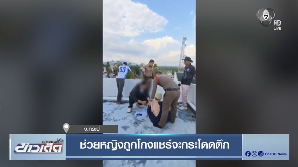 ข่าวเด็ด 7 สี - วุ่นทั้งโรงพัก เมื่อสาวใหญ่ถูกโกงแชร์เกิดความเครียด ปีนขึ้นดาดฟ้าชั้น 5 โรงพักเมืองกระบี่ จะกระโดดฆ่าตัวตาย ชาวบ้านเจอนั่งห้อยขา แจ้งตำรวจช่วยไว้ทัน