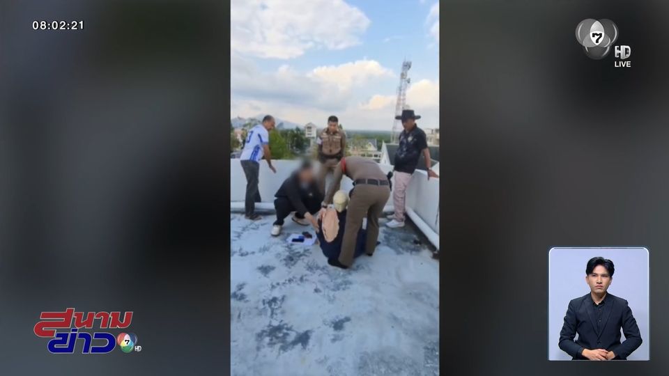 สนามข่าว 7 สี - วุ่นทั้งโรงพัก เมื่อสาวใหญ่ถูกโกงแชร์เกิดความเครียด ปีนขึ้นดาดฟ้าชั้น 5 โรงพักเมืองกระบี่ จะกระโดดฆ่าตัวตาย ชาวบ้านเจอนั่งห้อยขา แจ้งตำรวจช่วยไว้ทัน