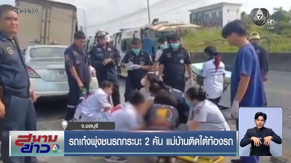 สนามข่าว 7 สี - บ้านใครอยู่ติดถนนต้องระวัง เพราะมีอุบัติเหตุรถเก๋ง พุ่งชนรถกระบะ 2 คัน ลากร่างแม่บ้าน ที่ก้มหยิบของข้างรถ เข้าไปติดคาใต้ท้องรถ