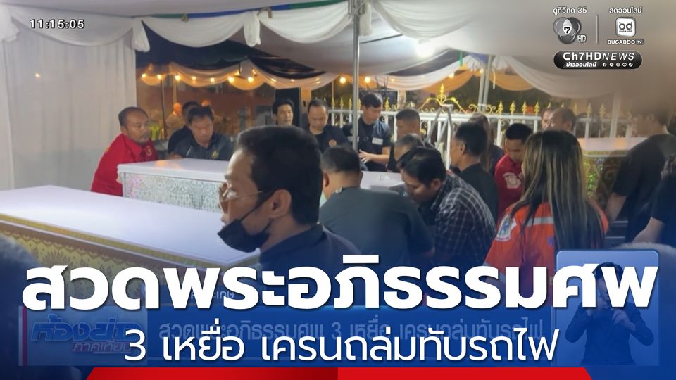 ห้องข่าวภาคเที่ยง - ครอบครัว 3 คน พ่อ-แม่ เเละลูกชาย วัย 8 ขวบ ที่ถูกเครนหล่นทับรถไฟ ขบวนที่ 21 จนเสียชีวิต ซึ่งเจ้าหน้าที่กู้ภัย ฮุก 31 นำร่างทั้งหมดถึงบ้านในอำเภออุทุมพรพิสัย จังหวัดศรีสะเกษ เเล้ว ท่ามกลางความโศกเศร้า โดยเฉพาะแม่ของนายสมจิตร ร้องไห้ลูกภาพถ่ายด้วยความอาลัย