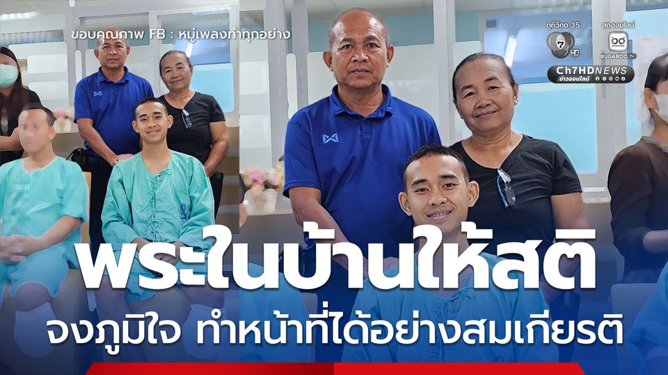 หมู่เพลง นักรบขาที่ 9 โพสต์ภาพถ่ายร่วมกับ พ่อ-แม่ ที่เดินทางไปเยี่ยมลูกชาย ด้วยใบหน้าที่ยิ้มแย้ม หลังผ่าตัดขาที่โรงพยาบาล