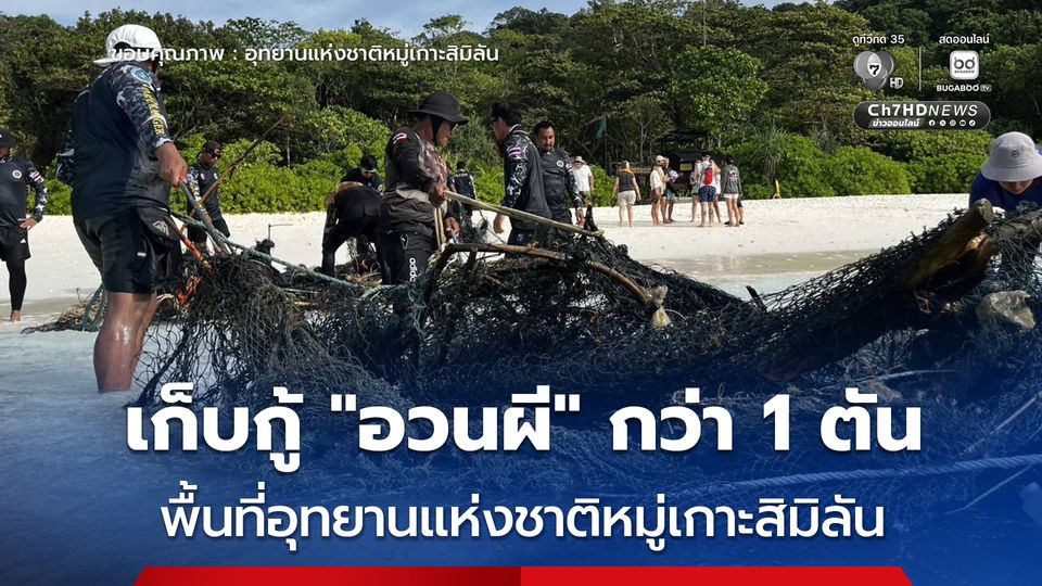 เจ้าหน้าที่อุทยานแห่งชาติหมู่เกาะสิมิลัน ลุยเก็บกู้ "อวนผี" กว่า 1 ตัน ภัยเงียบใต้มหาสมุทร ที่ดักจับสัตว์ทะเลนับไม่ถ้วน ทำลายแนวปะการัง และปล่อยสารพิษ กระทบต่อความสมดุลของระบบนิเวศทางทะเล
