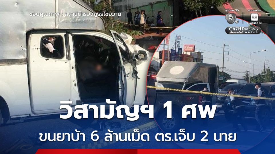 วิสามัญฆาตกรรมคนร้ายแก๊งขนยาบ้า 1 ศพ กลางเมืองหนองคาย หลังยิงต่อสู้เปิดทางหนี ตำรวจเจ็บ 2 นาย ค้นรถกระบะตู้ทึบของคนร้าย พบยาบ้า 6 ล้านเม็ด