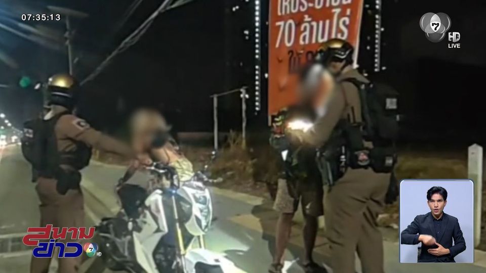 สนามข่าว 7 สี - ตำรวจสายตรวจ พบพิรุธรถจักรยานยนต์ที่มีชายหญิงคู่หนึ่งขี่มาด้วยกัน ไม่ติดแผ่นป้ายทะเบียน และไม่สวมหมวกกันน็อก จึงขอตรวจ เป็นอย่างไรไปชมพร้อมกัน