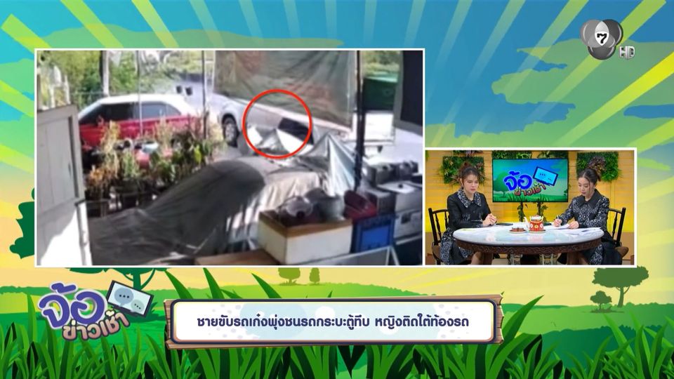 จ้อข่าวเช้า - ชายขับรถเก๋งพุ่งชนรถกระบะตู้ทึบ หญิงติดใต้ท้องรถ