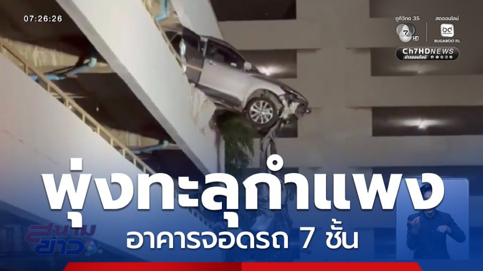 สนามข่าว 7 สี - ระทึก ! หญิงขับรถยนต์พุ่งทะลุกำแพงอาคารจอดรถ 7 ชั้น ย่านพระราม 4 หวิดตกอาคาร