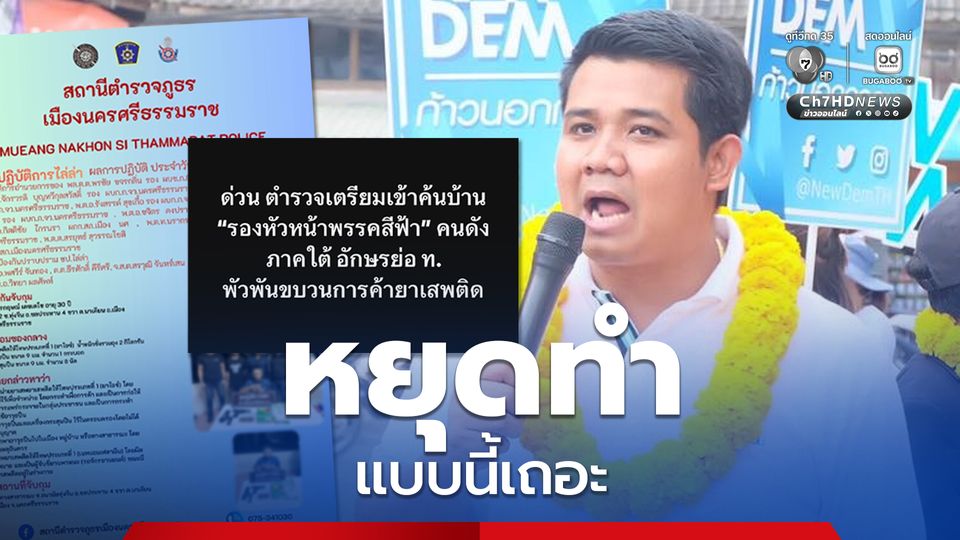 "ด่วน ตำรวจเตรียมเข้าค้นบ้าน “รองหัวหน้าพรรคสีฟ้า” คนดังภาคใต้ อักษรย่อ ท. พัวพันขบวนการค้ายาเสพติด"