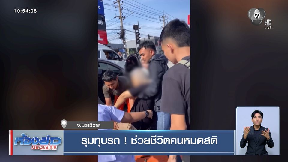 ห้องข่าวภาคเที่ยง - เห็นคลิปนี้ทำเอาใครได้เห็นก็ตกใจ คิดว่าปัญหาทะเลาะกันกลางถนน เพราะกลุ่มชายฉกรรจ์ ทั้งกระโดดถีบ ทุบกระจก ถึงขั้นใช้ค้อนไปทุบตีกระจกรถแตก ที่แท้ไปช่วยคนป่วยหมดสติในรถ