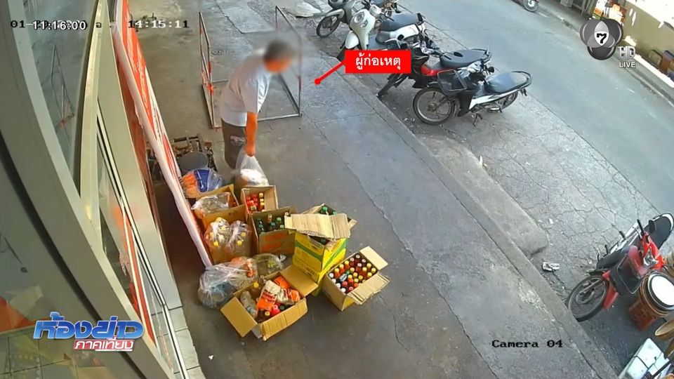 กล้องวงจรปิดหน้าร้านขายของ ในเขตเทศบาลนครอุดรธานี จับภาพชายที่ยืนอยู่ใกล้กองสินค้ากองใหญ่ ก้มลงหิ้วเอาถุงพลาสติก ที่บรรจุน้ำตาลทราย ถุงละ 1 กิโลกรัม จำนวน 9 ถุง แล้วเดินออกจากจุดดังกล่าวไป