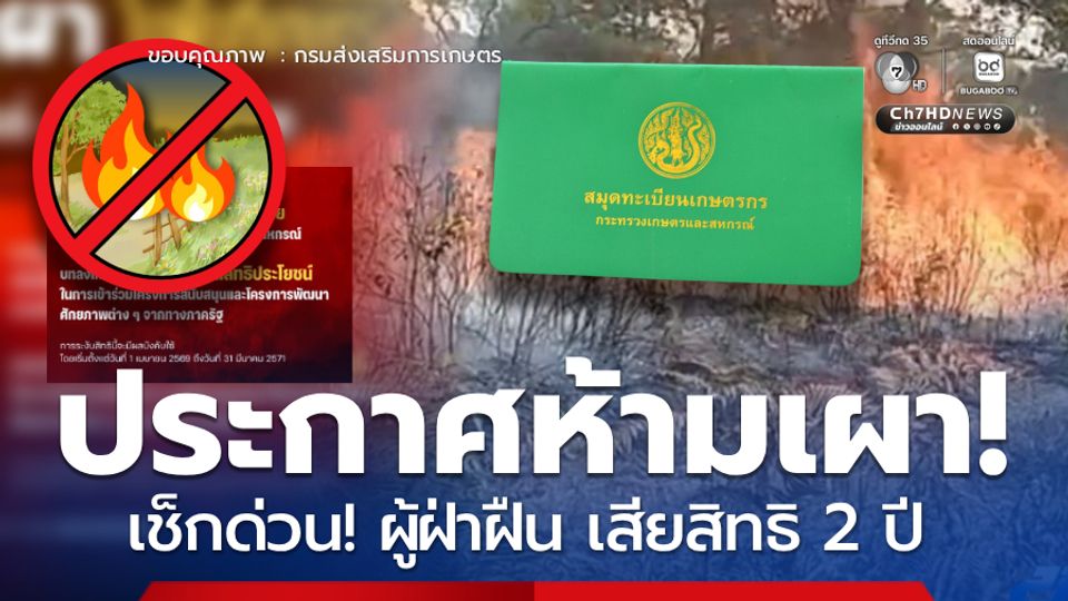 ข้อ 7 ในกรณีเกษตรกรรายใดมีประวัติการเผาในพื้นที่การเกษตร เกษตรกรรายนั้นจะได้รับสิทธิในการเข้าร่วมโครงการสนับสนุนและพัฒนาศักยภาพเกษตรกรทุกโครงการ โดยเป็นการขาดคุณสมบัติในการเข้าร่วมโครงการสนับสนุนและพัฒนาศักยภาพเกษตรกรนับตั้งแต่วันที่ 1 เมษายน 2569 ถึงวันที่ 31 มีนาคม 2571 ยกเว้นการช่วยเหลือเกษตรกรผู้ประสบภัยพิบัติด้านการเกษตร