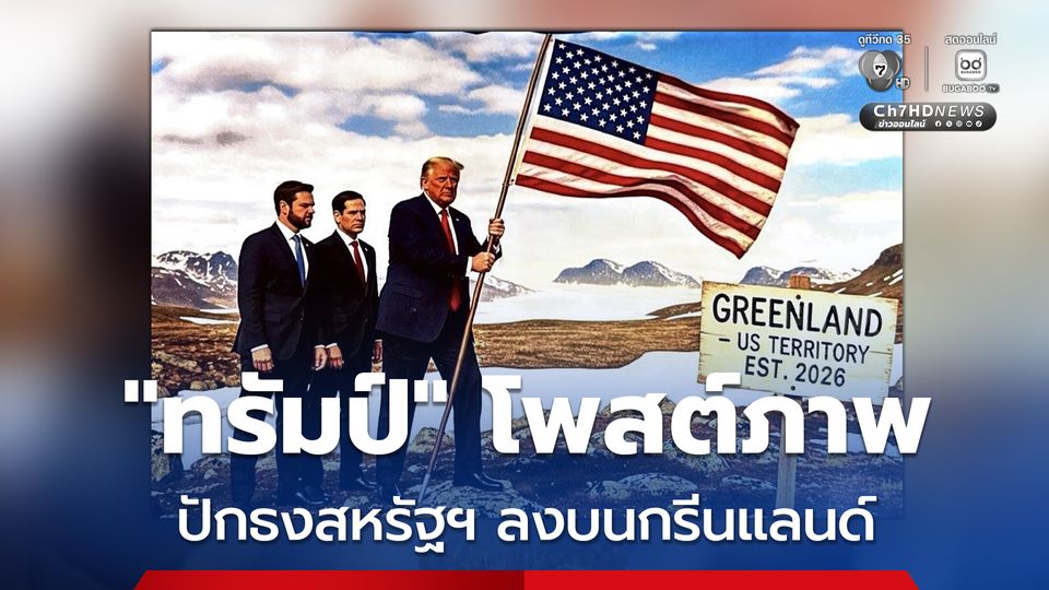 “โดนัลด์ ทรัมป์” โพสต์ภาพ AI ขณะที่เจ้าตัวกำลังปักธงชาติสหรัฐฯ ลงบนกรีนแลนด์ และมีป้ายข้อความว่า "กรีนแลนด์-ดินแดนของสหรัฐฯ ก่อตั้งปี 2026" ด้านนายกฯ กรีนแลนด์ กล่าวเป็นการกระทำที่ไม่ให้เกียรติกัน
