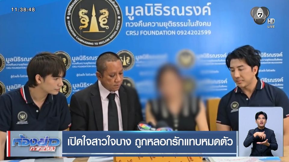 ห้องข่าวภาคเที่ยง - ทีมข่าวติดตามเรื่องผู้หญิงคนหนึ่ง ที่เธอหลั่งน้ำตาไปร้องขอความช่วยเหลือจากมูลนิธิรณรงค์ทวงคืนความยุติธรรมในสังคม เธอกินไม่ได้นอนไม่หลับมาเกือบเดือน ถูกผู้ชายโพรไฟล์ดีหลอก พอแจ้งความดำเนินคดีกลับถูกแจ้งความกลับ