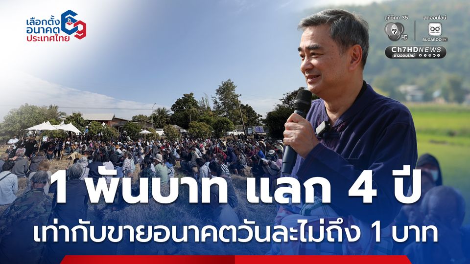 "อภิสิทธิ์" ปราศรัยกลางทุ่งเตือน รับเงิน 1 พันบาท แลก 4 ปี ไม่คุ้ม โครงการพัฒนาไม่เกิด นโยบาย "เกิดจนตาย" มั่นคงถ้วนหน้า อยากได้บ้านเมืองสุจริต ให้โอกาสประชาธิปัตย์ทำงาน