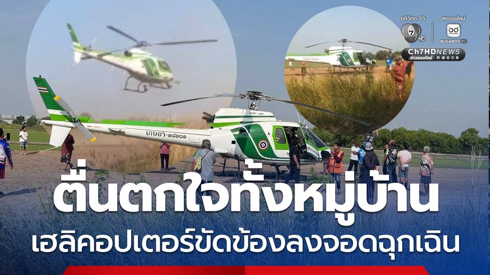 ชาวบ้านใน ต.บ้านหว้า อ.บางปะอิน จ.พระนครศรีอยุธยา ตื่นตกใจทั้งหมู่บ้าน เฮลิคอปเตอร์ของกระทรวงเกษตรฯ ขัดข้องบินต่ำ ลงจอดฉุกเฉินกลางทุ่งนา โชคดีไม่มีใครเป็นอะไร