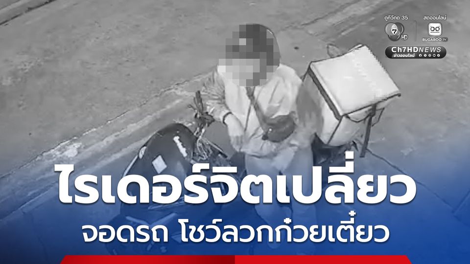 วันนี้ (22 ม.ค. 69) กล้องวงจรปิดของร้านค้าแห่งหนึ่งในพื้นที่ ต.สวนหลวง อ.กระทุ่มแบน จ.สมุทรสาคร สามารถบันทึกภาพเมื่อเวลา 21.18 น. วานนี้ (21 ม.ค.) ขณะที่ชายคนหนึ่งแต่งกายคล้ายไรเดอร์ สวมหมวกกันน็อกและแว่นตา ขี่รถจักรยานยนต์มาจอดบริเวณหน้าร้านค้า ก่อนจะล่วงอวัยวะเพศออกมาจากกางเกงและได้ทำการช่วยตัวเองอยู่บนเบาะรถ หลังจากนั้นก็ขี่รถจักรยานยนต์ออกไป