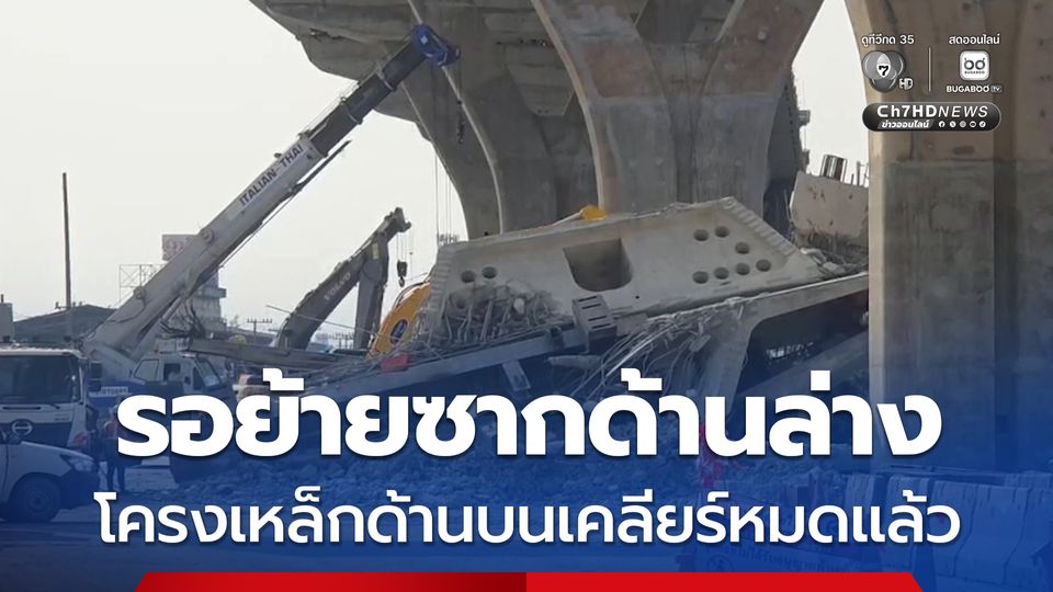 คืบหน้าเครนพระราม 2 ถล่ม เคลียร์โครงเหล็กด้านบนหมดแล้ว เหลือรอย้ายซากด้านล่าง ด้านจราจรยังคงติดหนึบ ชาวบ้านร้องขอเร่งทำงาน คืนช่องจราจร