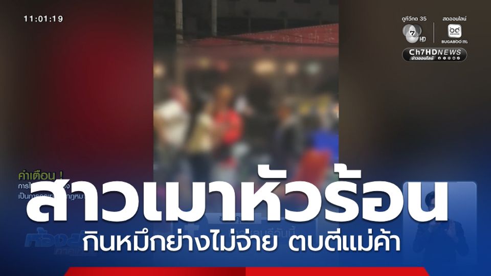 ห้องข่าวภาคเที่ยง - ในโซเชียลฯ กำลังแชร์คลิปนี่ ตามหาตัวลูกค้าสาว เมาแล้วหัวร้อน ออกลูกนักเลงตบตีแม่ค้าขายหมึกย่าง สั่งซื้อหมึกย่างกิน 100 บาท แต่ไม่โอนเงินจ่าย พอทวงถาม พุ่งตบหน้าแม่ค้าเลย