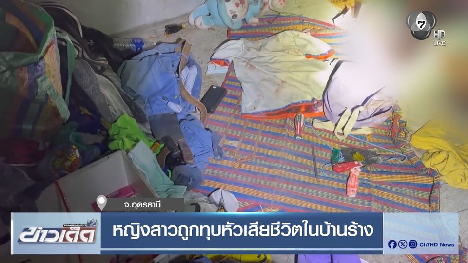 ข่าวเด็ด 7 สี - เกิดเหตุหญิงสาวเสียชีวิตในบ้านร้าง ในจังหวัดอุดรธานี พบศพสภาพถูกทุบหัว ขณะที่สามีไปซื้อกับข้าวกับลูก