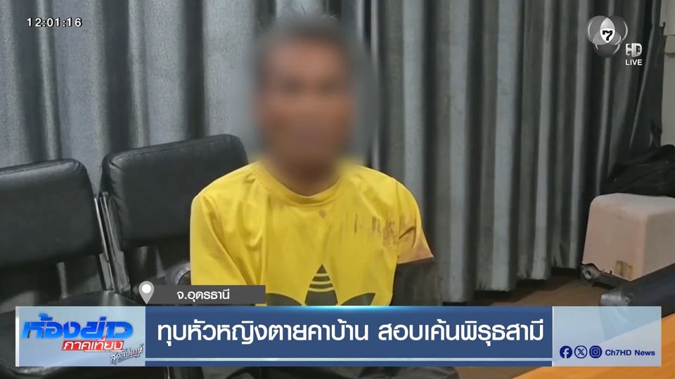 ห้องข่าวภาคเที่ยง สุดสัปดาห์ - ฆาตกรโหดทุบหัวสาวใหญ่ดับคาที่นอนในบ้านร้าง กลางเมืองอุดรธานี สามีขี้เมาอ้างไม่รู้เรื่อง ไปซื้อกับข้าวกับลูกชายอายุ 4 ขวบ ถ้าไม่เชื่อให้ถามลูก ตำรวจโต้ ลูกจะไปรู้เรื่องอะไร คุมตัวพ่อสอบเค้นพิรุธ
