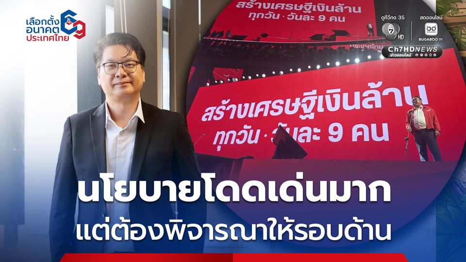 “ดร.สติธร” มองนโยบาย “สุ่มแจกเงินล้าน” ของเพื่อไทย เด่นด้านการสื่อสาร สร้างความหวังรายวันให้ประชาชน แต่ต้องพิจารณารอบด้านในระยาว ในการต่อยอดเชิงโครงสร้าง ความมั่นคง โอกาสเข้าถึงสิทธิ์ และความคุ้มค่าด้านงบประมาณ