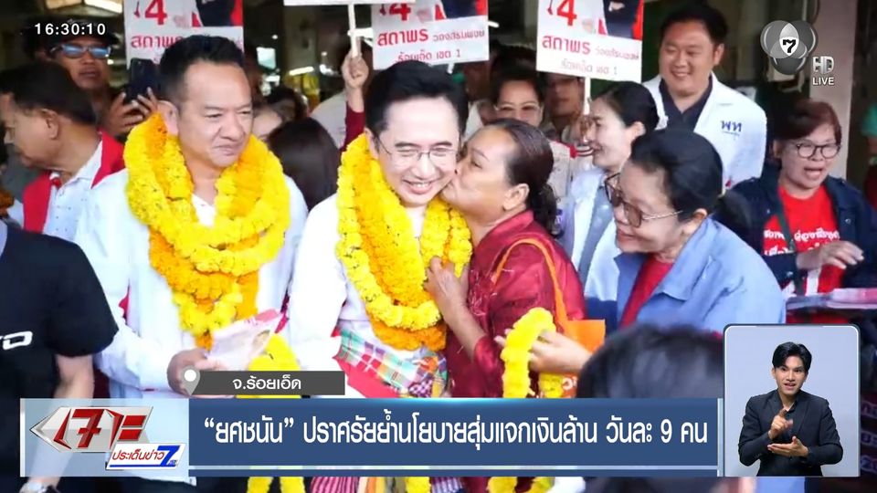 “ยศชนัน” ปราศรัยย้ำนโยบายสุ่มแจกเงินล้าน วันละ 9 คน จ.ร้อยเอ็ด