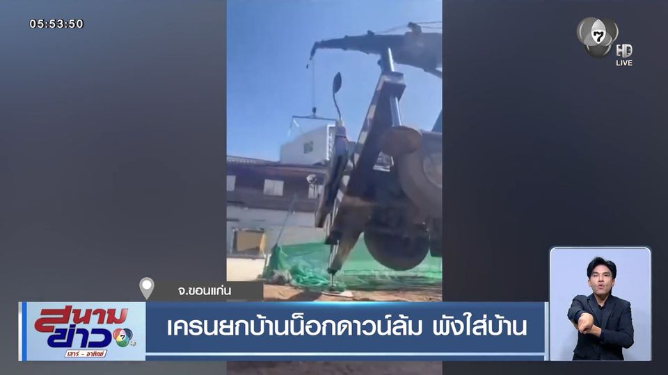 สนามข่าวเสาร์-อาทิตย์ - ระทึกอีก รถเครน ฝืนยกบ้านน็อกดาวน์ ทั้งที่รับน้ำหนักไม่ไหว ทำให้บ้านน็อกดาวน์ตกใส่บ้านที่อยู่ติดกัน