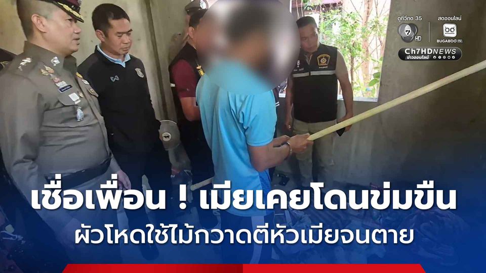 ผัวโหดใช้ด้ามไม้กวาดทางมะพร้าวตีหัวเมียจนตาย อ้างเพื่อนบอกเมียเคยโดนข่มขืน แต่ไม่ยอมบอก ลูกชาย 4 ขวบเห็นกับตา เล่าให้ ตร.ฟัง สืบไปสืบมา หลักฐานมัดตัวชัด
