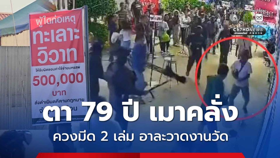 ตาวัย 79 ปี เมาเหล้าอย่างหนัก คลุ้มคลั่ง พกมีด 2 เล่มอาละวาดงานวัด หลังไม่พอใจถูกห้ามเข้าเที่ยวชมงานหมอลำคณะระเบียบวาทะศิลป์ เหตุผ่านจุดคัดกรองพบอาวุธมีด ฟันเจ้าหน้าที่รักษาความปลอดภัยเจ็บ 2 คน