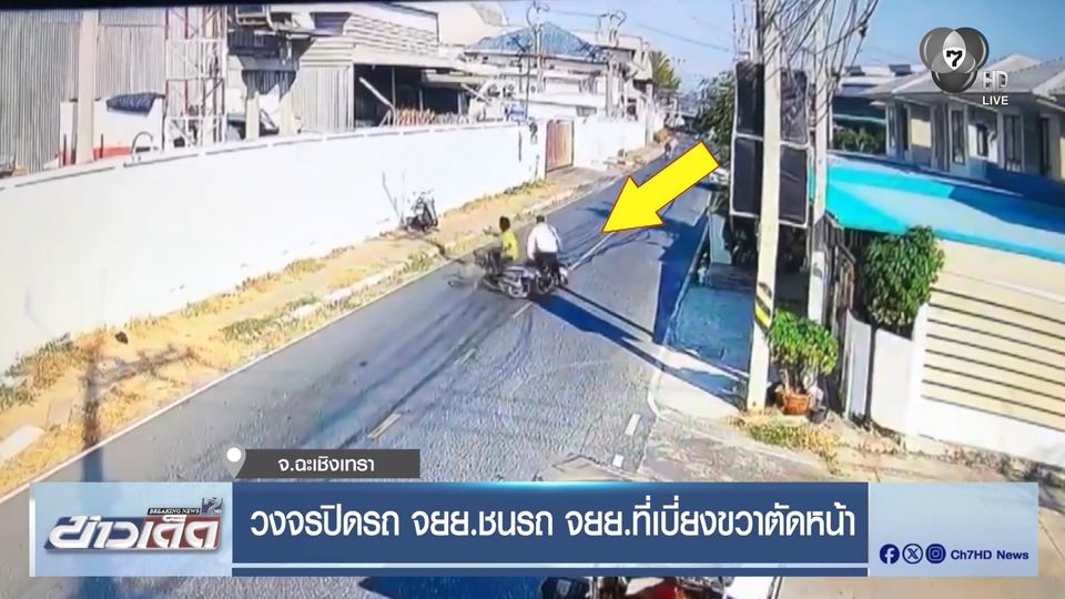 เป็นภาพจากกล้องวงจรปิดที่ติดตั้งไว้บริเวณริมถนนถนนสายวัดบางเกลือ หมู่ที่ 3 ตำบลบางสมัคร อำเภอบางปะกง จังหวัดฉะเชิงเทรา ที่บันทึกภาพชายสวมเสื้อสีเหลืองที่ขี่รถจักรยานยนต์มาตามถนน ก่อนจะเบี่ยงรถออกมาทางขวาโดยไม่ได้เปิดไฟเลี้ยว และมีรถจักรยานยนต์อีกคันที่คนขี่สวมเสื้อเชิ้ตสีขาวขี่ตามมาด้วยความเร็ว และชนเข้ากับรถคันแรก จนล้มลงไปทั้งสองคัน