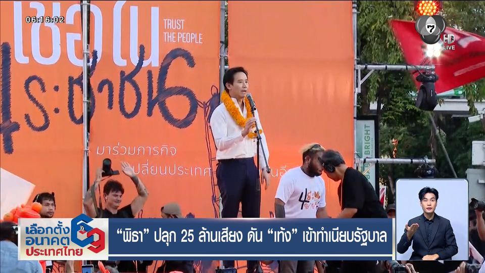 "พิธา" ปลุก 25 ล้านเสียง ดัน "เท้ง" เข้าทำเนียบรัฐบาล