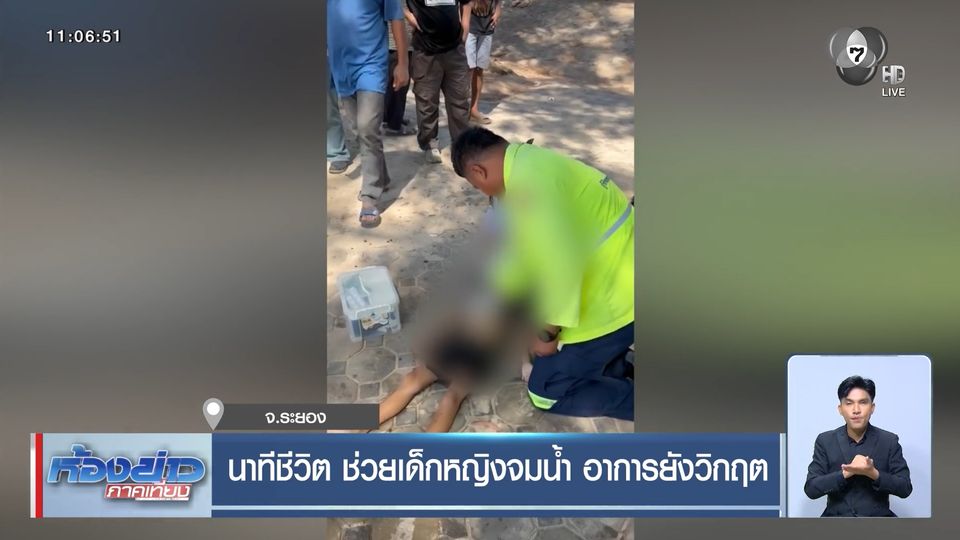 ห้องข่าวภาคเที่ยง - นาทีชีวิต พลเมืองดี ช่วยชีวิตเด็ก 7 ขวบ จมน้ำทะเลระยอง แม้ว่าจะได้รับการช่วยชีวิต ปฐมพยาบาล และนำส่งโรงพยาบาลแล้ว แต่อาการยังวิกฤต