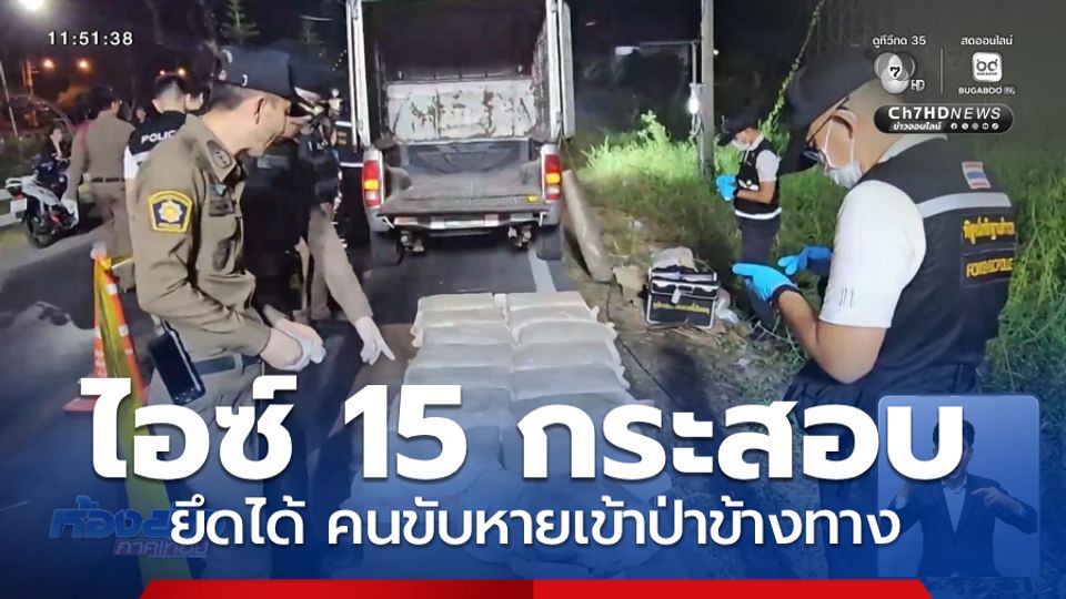ห้องข่าวภาคเที่ยง - คนขับกระบะตู้ทึบ ซิ่งฝ่าด่าน จอดรถวิ่งหลบหนีเข้าป่าข้างทาง ตำรวจจัดกำลังล่าตัว ตรวจสอบพบไอซ์ ซุกซ่อน 15 กระสอบ