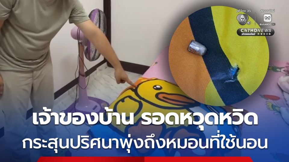 กระสุนปืนปริศนา 2 นัด พุ่งเข้าบ้านทะลุหน้าต่าง-ผนังห้องนอน ถึงหมอนที่เจ้าของบ้านใช้นอน รอดหวุดหวิด