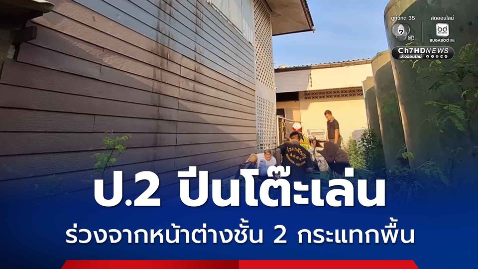 นักเรียนหญิงชั้น ป.2 เล่นปีนโต๊ะใกล้ริมหน้าต่างห้องเรียน พลัดร่วงจากชั้น 2 ร่างกระแทกพื้นขาหัก