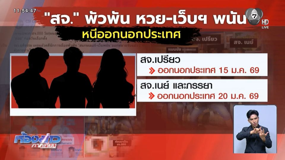 ซึ่งตามข้อมูลที่รัฐมนตรีว่าการกระทรวงยุติธรรม เคยระบุไว้เมื่อวันก่อน บอกว่า "สจ.เนย์" และภรรยา ออกนอกประเทศไปตั้งแต่ 20 มกราคม ส่วน "สจ." อีกคน ออกไปตั้งแต่ 15 มกราคม