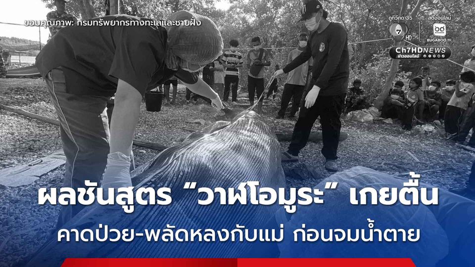 กรมทะเล เผยผลชันสูตร “วาฬโอมูระ” เกยตื้นที่บริเวณคลองปูยู จ.สตูล คาดสาเหตุการตายเกิดจากป่วย-พลัดหลงจากแม่ก่อนจมน้ำตาย