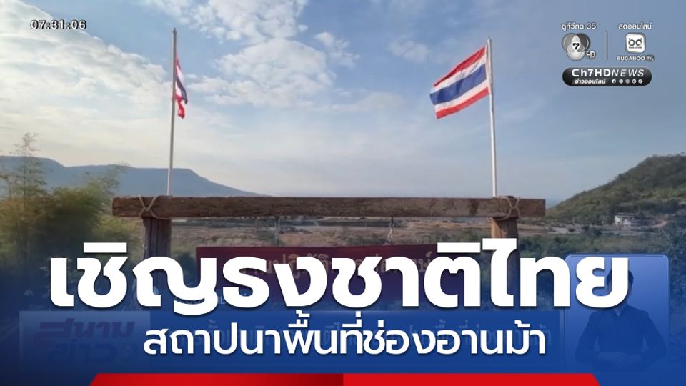 สนามข่าว 7 สี - สถานการณ์ชายแดน ที่จังหวัดอุบลราชธานี ทหารไทยและประชาชนร่วมกันตั้งเสาเชิญธงชาติไทยขึ้นสู่ยอดเสา เพื่อประกาศสถาปนาพื้นที่บนแผ่นดินไทยที่ช่องอานม้า