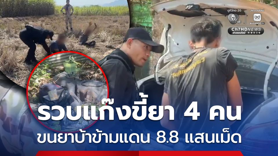 รวบแก๊งขี้ยา 4 คน ขณะมั่วสุมเสพยา หลังขนยาบ้าจาก สปป.ลาว ข้ามแม่น้ำเหือง มาซุกไว้กอกล้วย 8.8 แสนเม็ด