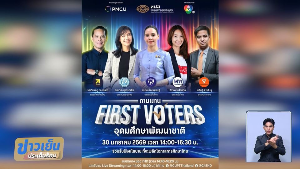 ข่าวเย็นประเด็นร้อน - ทปอ. ร่วมกับ ช่อง 7HD เปิดเวที "ถามแทน FIRST VOTERS" อุดมศึกษาพัฒนาชาติ