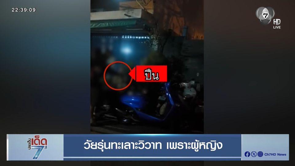 ประเด็นเด็ด 7 สี - วัยรุ่นทะเลาะกันเพราะเรื่องผู้หญิง จึงซ้อนรถจักรยานยนต์มากับเพื่อนพกปืนมาหวังเอาเรื่อง จนวัยรุ่นในพื้นที่ต้องเข้าห้าม แต่เจ้าตัวดึงดันจะเอาเรื่อง สุดท้ายโดนรุมกระทืบ