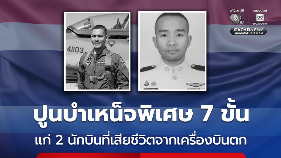 กองทัพอากาศ จัดพิธีรับร่าง 2 นักบินที่เสียชีวิตขณะปฏิบัติหน้าที่อย่างสมเกียรติ ปูนบำเหน็จพิเศษ 7 ขั้น