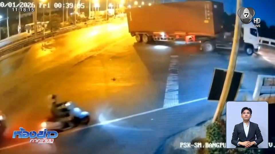 ห้องข่าวภาคเที่ยง - เกิดเหตุระทึก รถบรรทุกพ่วงตู้คอนเทนเนอร์เกี่ยวสายเคเบิล ขณะขึ้นสะพานทางเข้านิคมอุตสาหกรรมบางปู ทำเสาไฟฟ้าหักโค่นกว่า 70 ต้น ไฟฟ้าดับหลายชุมชน