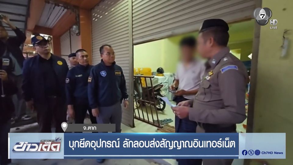 ข่าวเด็ด 7 สี - ตำรวจไซเบอร์ และเจ้าหน้าที่ฝ่ายปกครอง บุกค้นอาคารที่ลักลอบติดตั้งเสาส่งสัญญาณอินเทอร์เน็ต ไปยังประเทศเพื่อนบ้าน